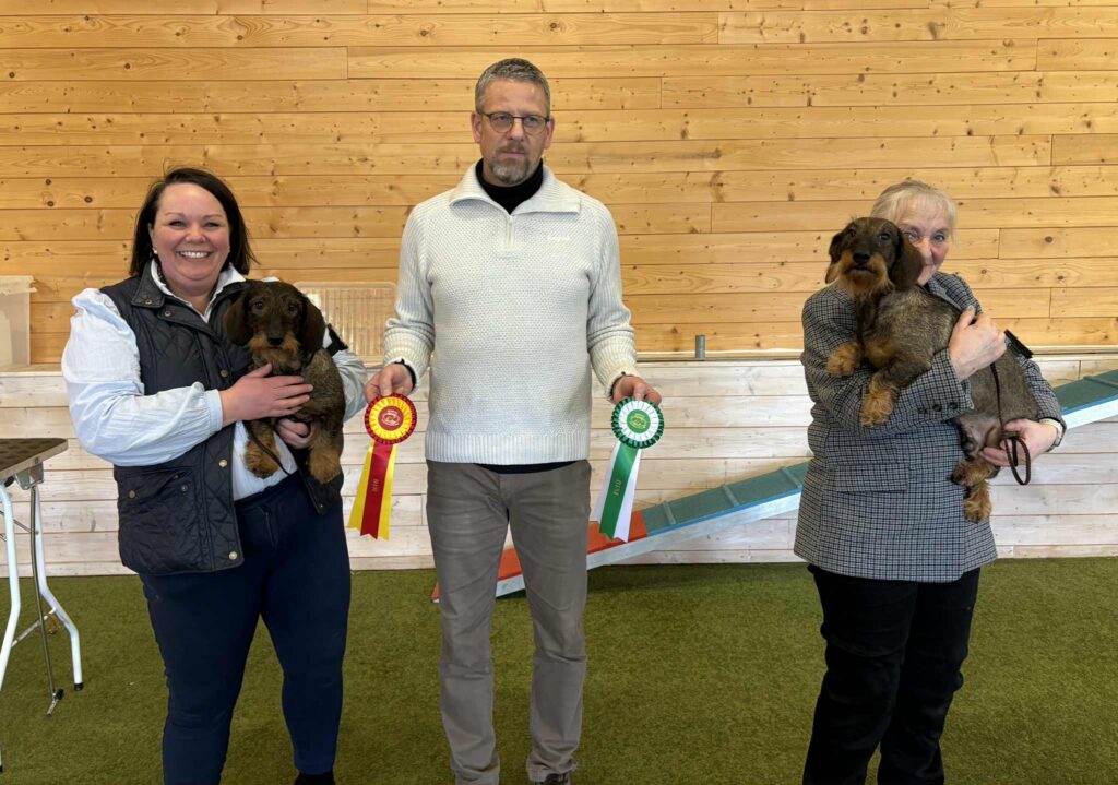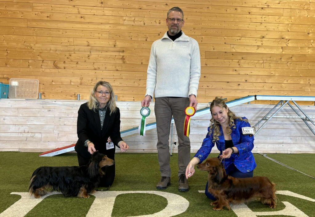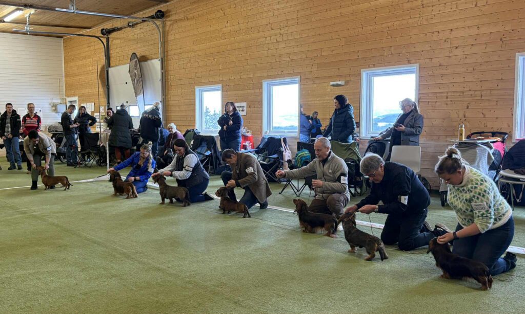 Øverst fra venstre: BIS 3 dachshund langhåret Birthe av Melkildhaugen (eier Lene Husby Johannessen og Malin Fredrikke Landmark), BIS 4 dvergdachshund strihåret Imago Dei Vitoraz (eier Trond Johannessen, BIS valp Minstemann’s Esme og BIS 2 valp Chirabida’s Osborn, BIS oppdretterklasse Kennel Kiara Almighty, BIS veteran Birthe av Melkildhaugen, BIR og BIM veteran Sørils BM Kamran (eier Anette Mogen) og Birthe av Melkildhaugen, BIR og BIM dachshund strihåret Kiara Almightys SDH Alfa og Kiara Almightys SDH Alfred (eier Randi Jenssen), BIR langhåret kanindachshund Minstemann’s Za-Rina (eier Anita og Åge Solberg) og BIR veteran Amarita’s Eabony TS (Eier Rita Solheim Hjartnes), BIR dachshund langhåret Birthe av Melkildhaugen, BIR og BIM dachshund korthåret Pediculus Ga Ga (eier Kirsten Næss) og Snøfalkens GTL Otto (eier Anine H. Midttun), BIR langhåret dvergdachshund, og ny norsk utstillingschampion Radka av Rustbøle (eier Inger Marie Højdahl), ny norsk utstillingschampion Jakira,s Xanadu (eier Frøy Høgset Larsen og Aud Haugerud Johansen).