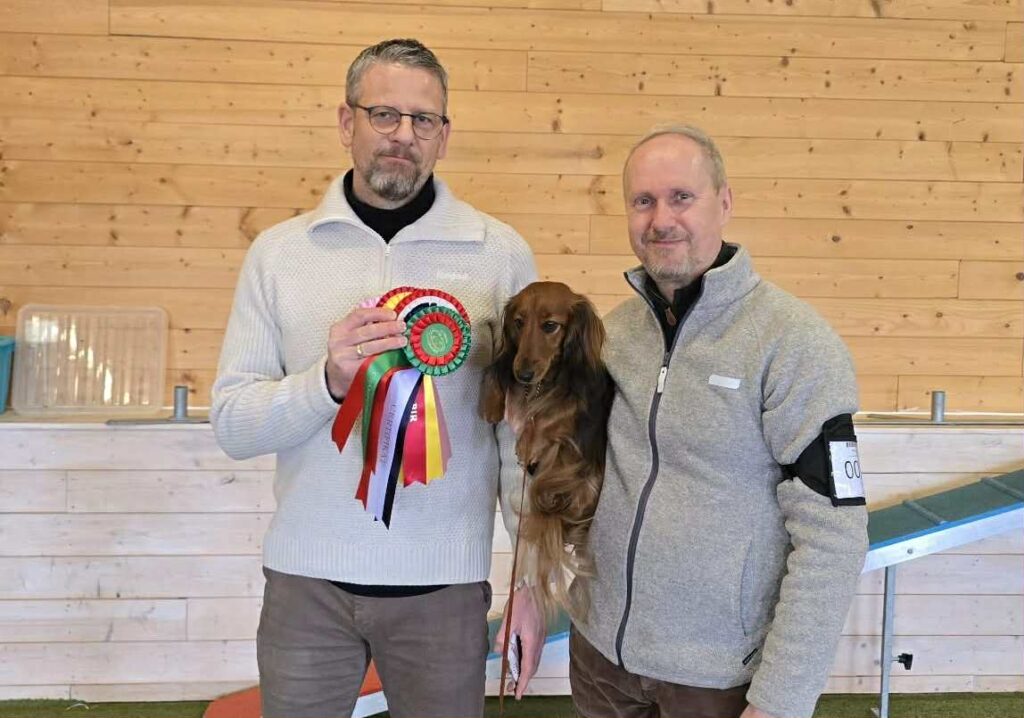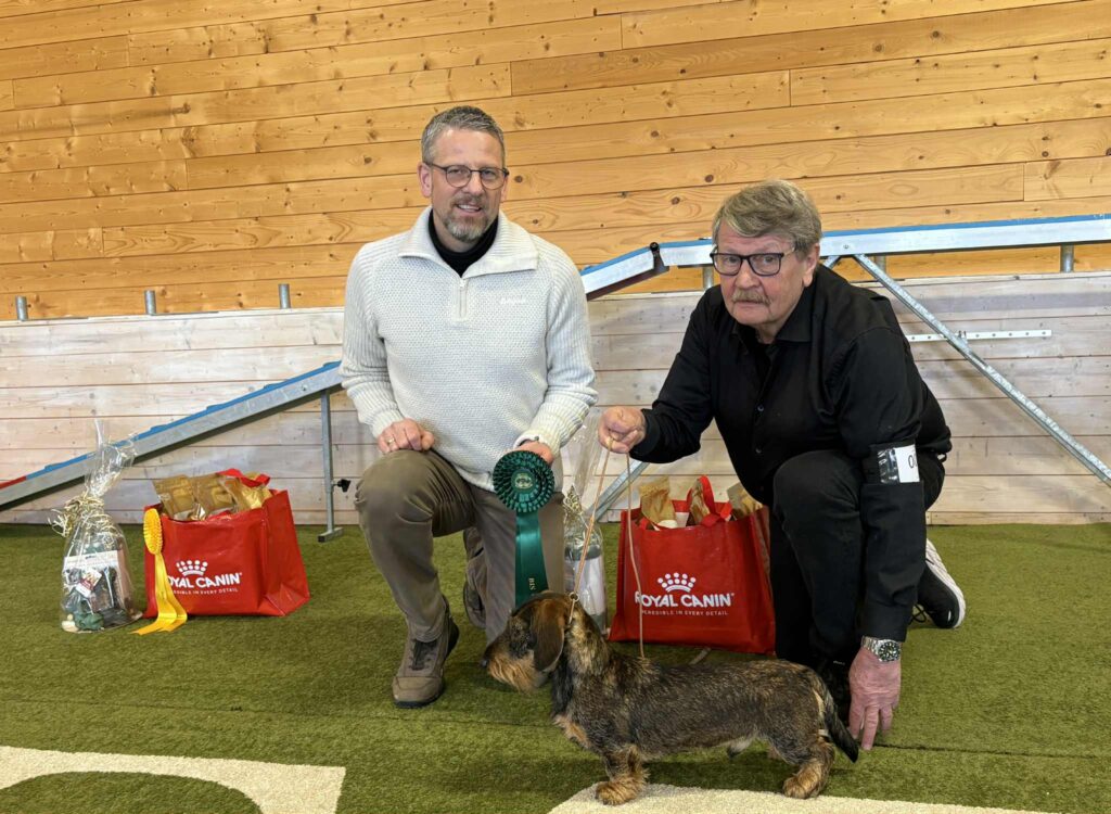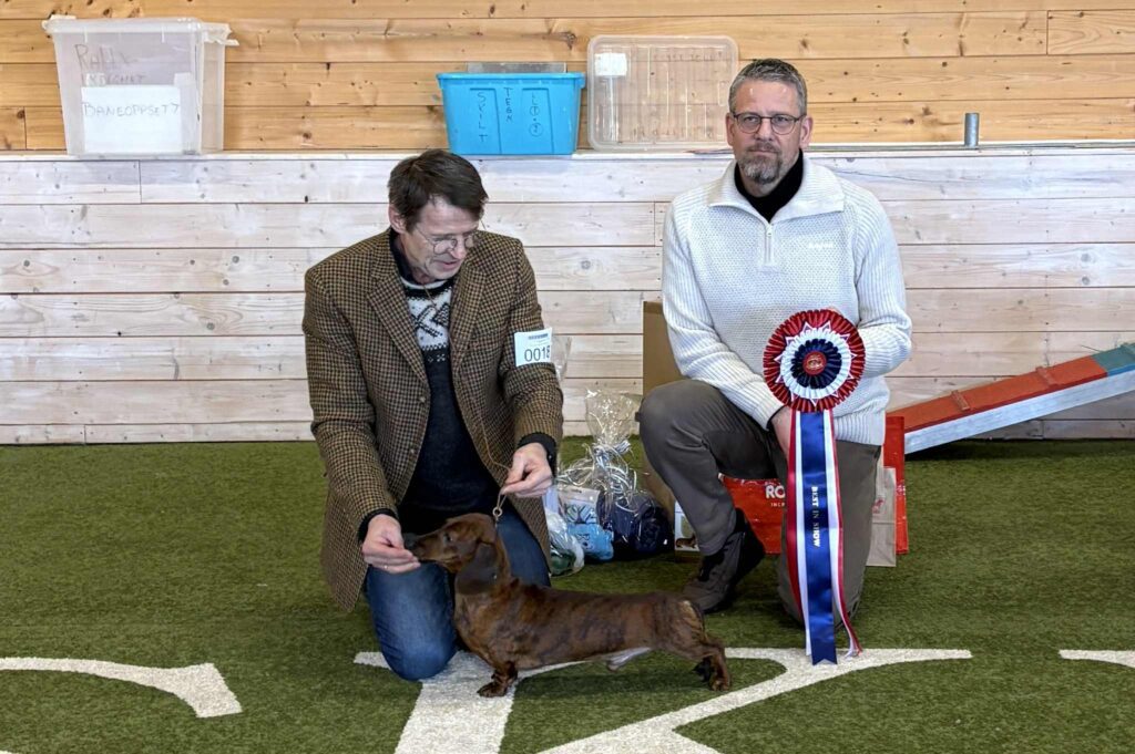 Totalt 37 hunder var påmeldt til klubbens årets første utstilling på Bokrudstad Hundesenter. Dommer var Jørn Prestrudstuen, og han valgte til slutt korthåret dvergdachshund Minstemann’s Shot Gun som utstillingens vakreste. Eier er Anita Solberg.