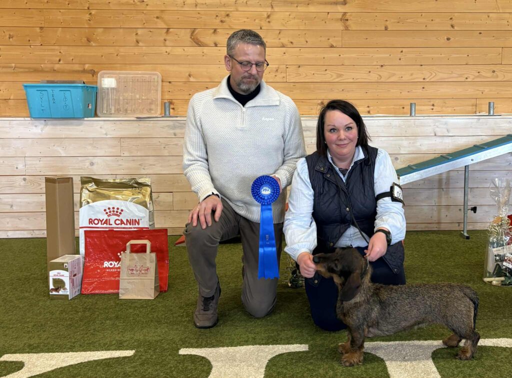 En korthåret dvergdachshund fikk med seg den største rosetten hjem fra Hedmark Dachshundklubbs utstilling i Brumunddal søndag.